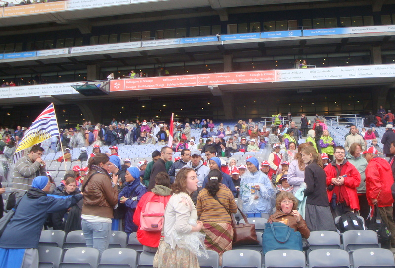 We journeyed to Croke Park by bus, hoofing the last good stretch to the stadium (including completely circling it outside and inside to get to our places. Following the liturgy, we had a great time trying to find our coach for the return trip but made it back for a closing festive dinner in the hotel dining-room. Today we have a 6am Mass, then breakfast and off to the airport for a 10:45 departure on Air Canada to Toronto, customs procedures and transfer to an Ottawa connecting flight arriving at YOW at 4:15 and home, it is hoped an hour later.